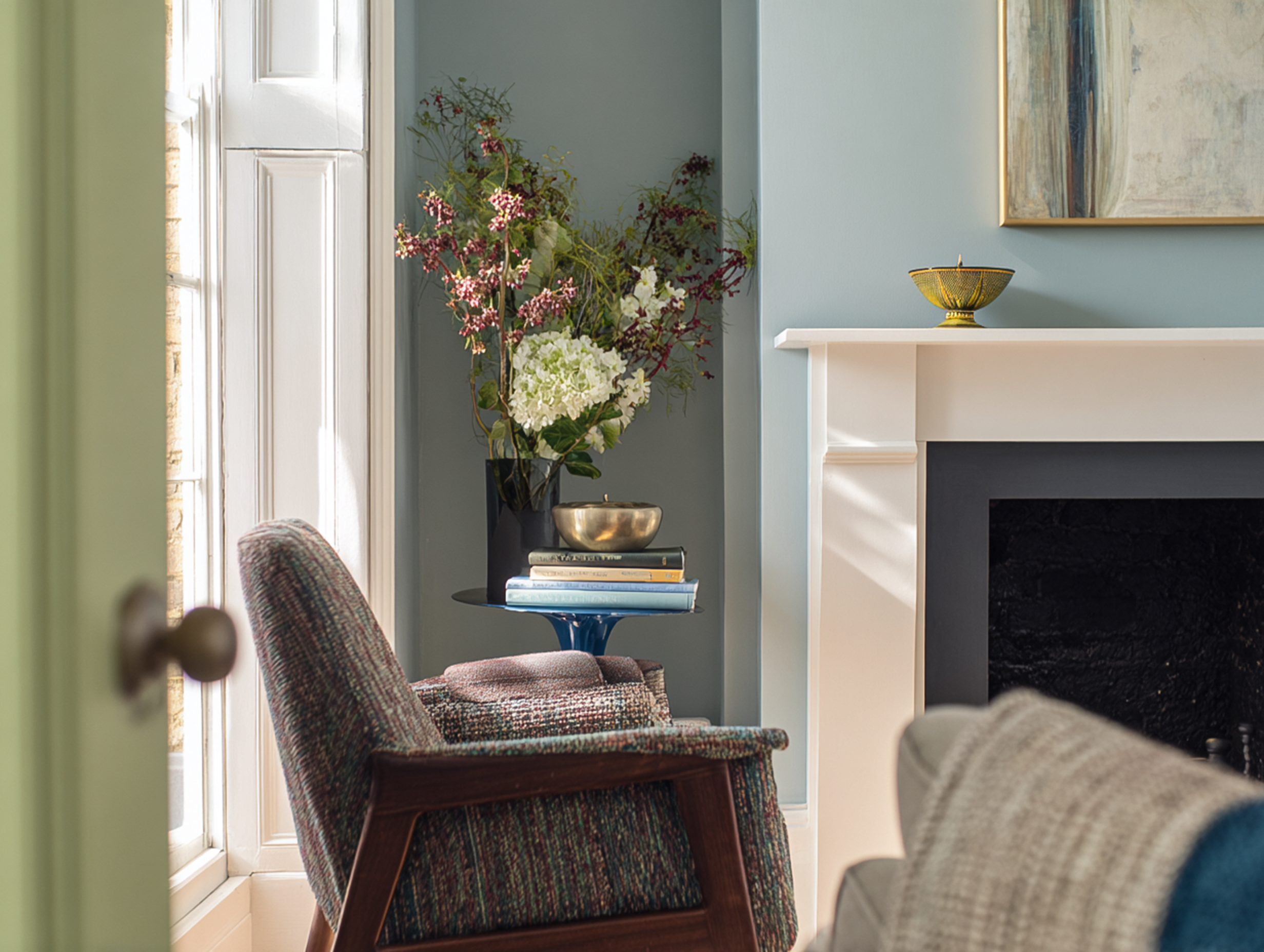 An enchanting hue capturing the gentle interplay of blues and greens, like a fresh rainfall, or a misty morning in hidden emerald valleys. Cool, balanced, and versatile, bringing depth and elegance to contemporary and traditional settings alike.